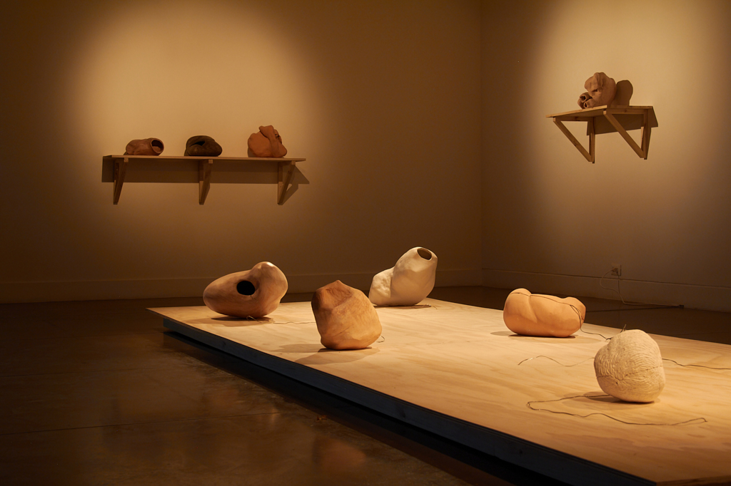 Coexistencias Terrestres es una instalación reflexiva en torno al tiempo y el espacio de cuerpos que habitan una cronología entre la cerámica y el sonido. Una manera de acontecer que yace en dinámicas de lo mutuo: La pasta desde su existencia cíclica, y el sonido desde su emergencia fugaz y muerte instantánea.